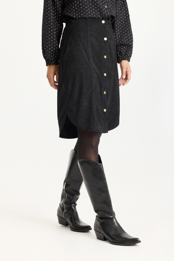 Edessä napitus alas asti. Helma hieman pyöristetty sivuilta.