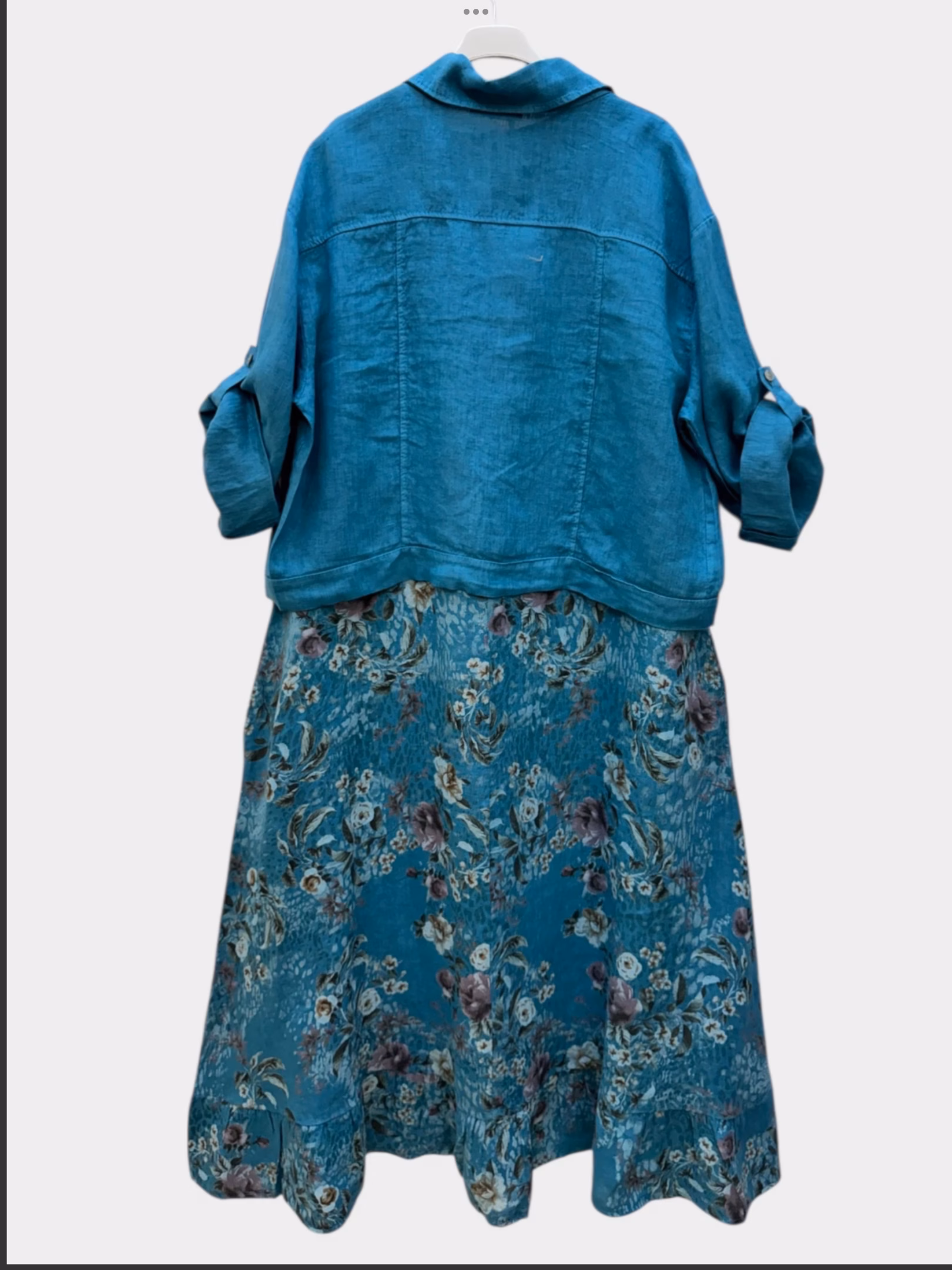 Italy Pellavamekko jakulla. Jakku on irrallinen, voidaan käyttää erikseen. One size, reilulla mitoituksella. Mekko on hihaton, heiman A-linjanen malli. Helmassa pieni frilla.