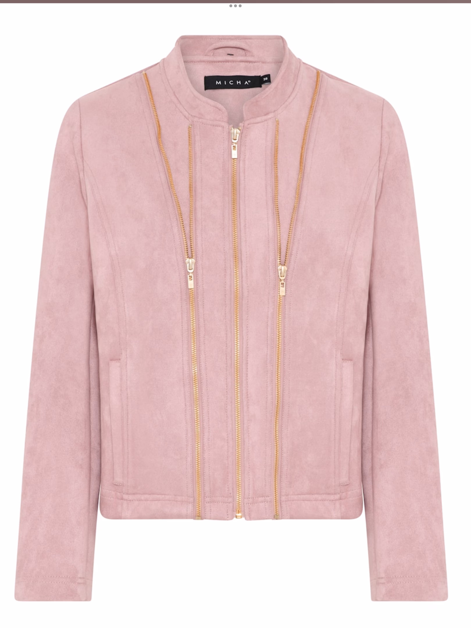 Hyvin joustava pehmeä jakku. Edessä vetoketju, sivuilla koristevetoketjut.