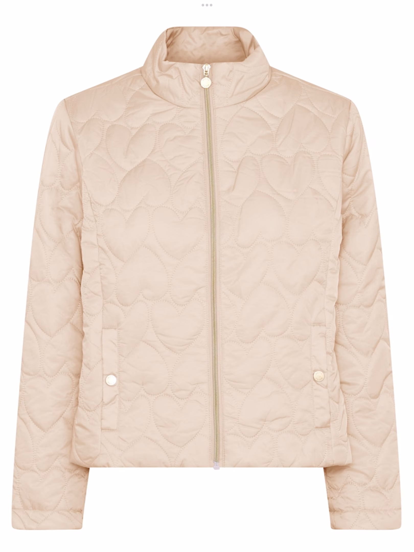 Söpö kevytvanutakki sydäntikkauksella. Edessä vetoketju, sivuilla taskut neppareilla. Korkea kaulus, ei huppua.
