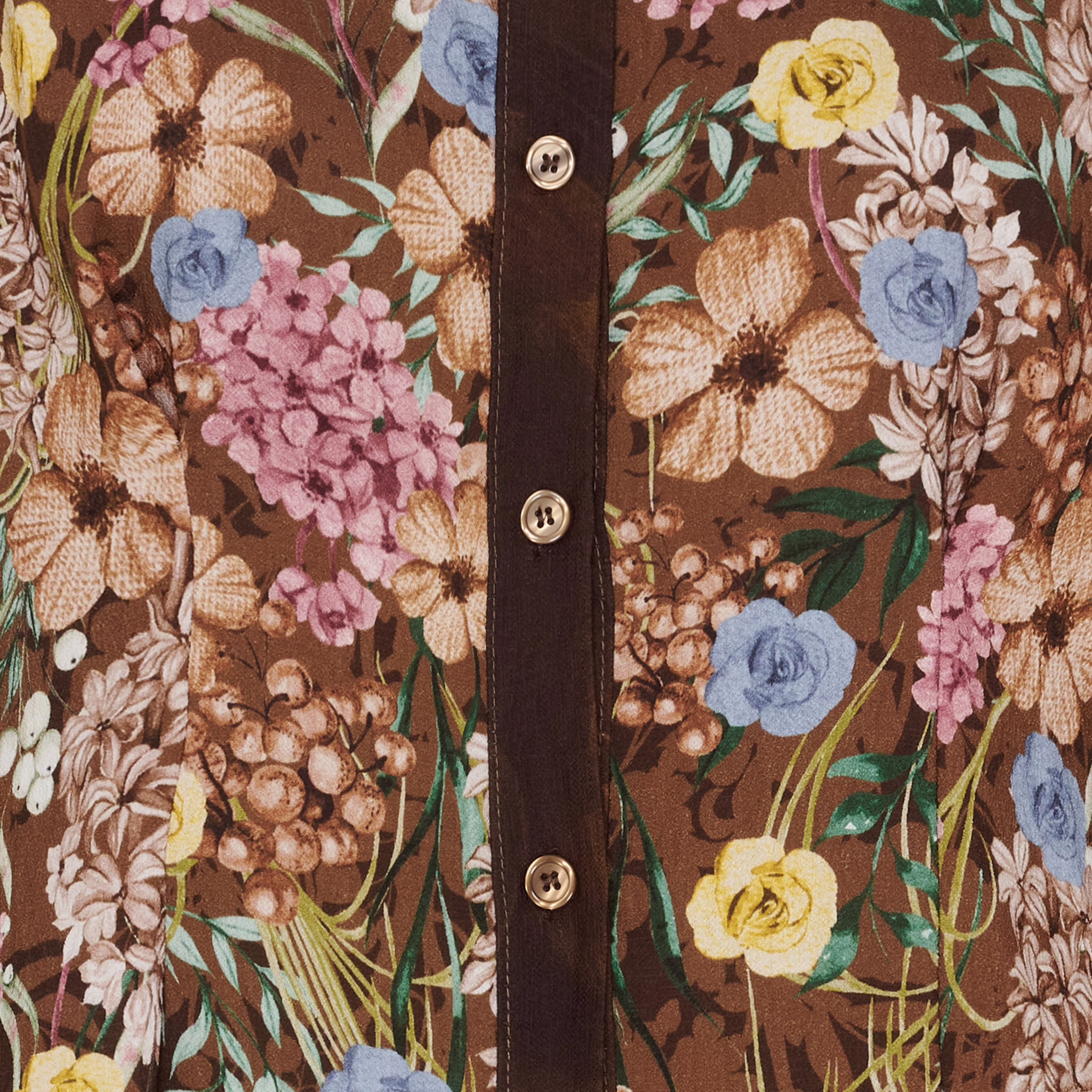 Kaunis Marta-mekko. Se on ruskea ja siinä on kaunis kukkakuvio upeissa väreissä. Yhdistä mekko sukkahousujen tai housujen kanssa.