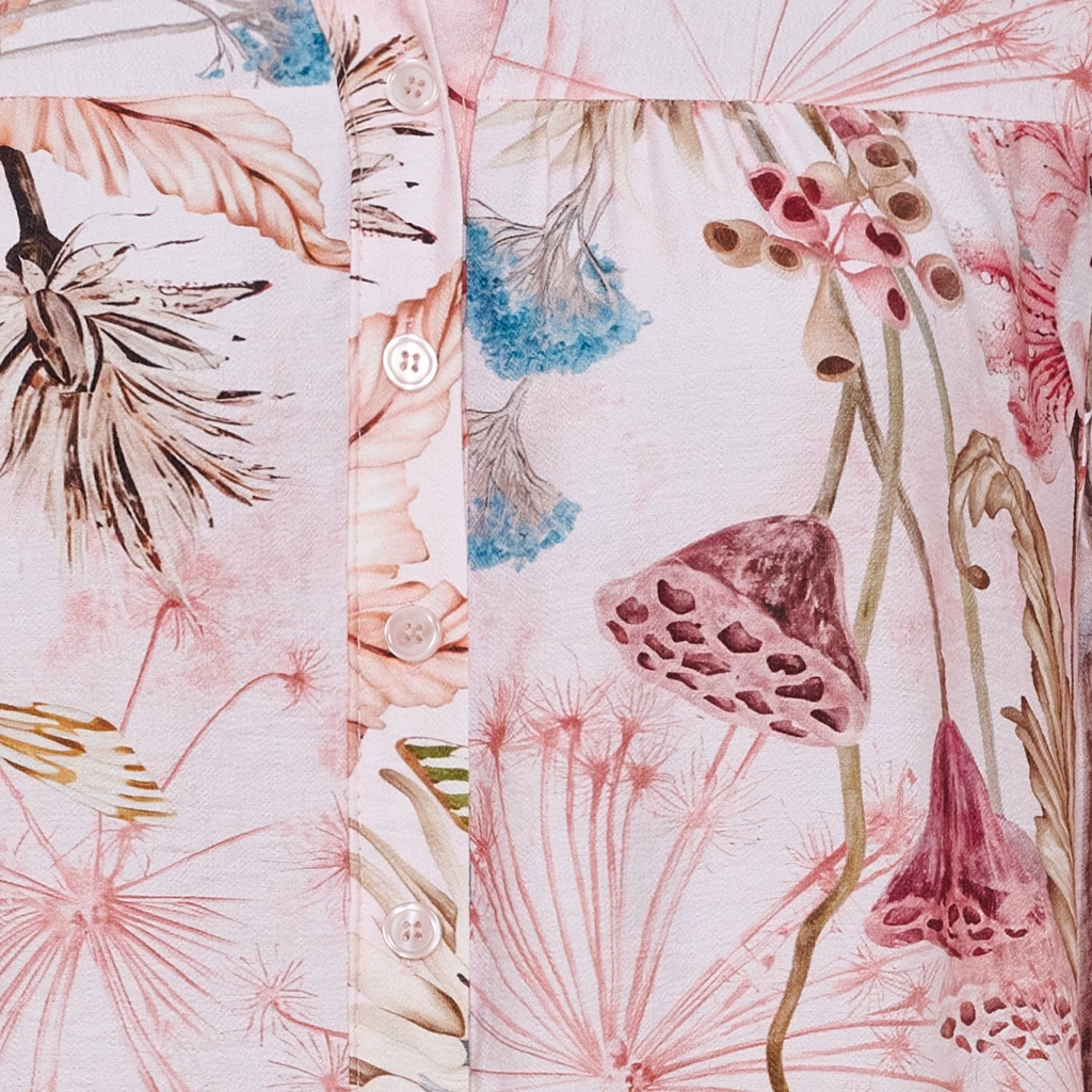 Martan kaunis kuvioitu viskoosimekko. Edessä kolme nappia. Hihoissa kuminauha pienellä frillalla.