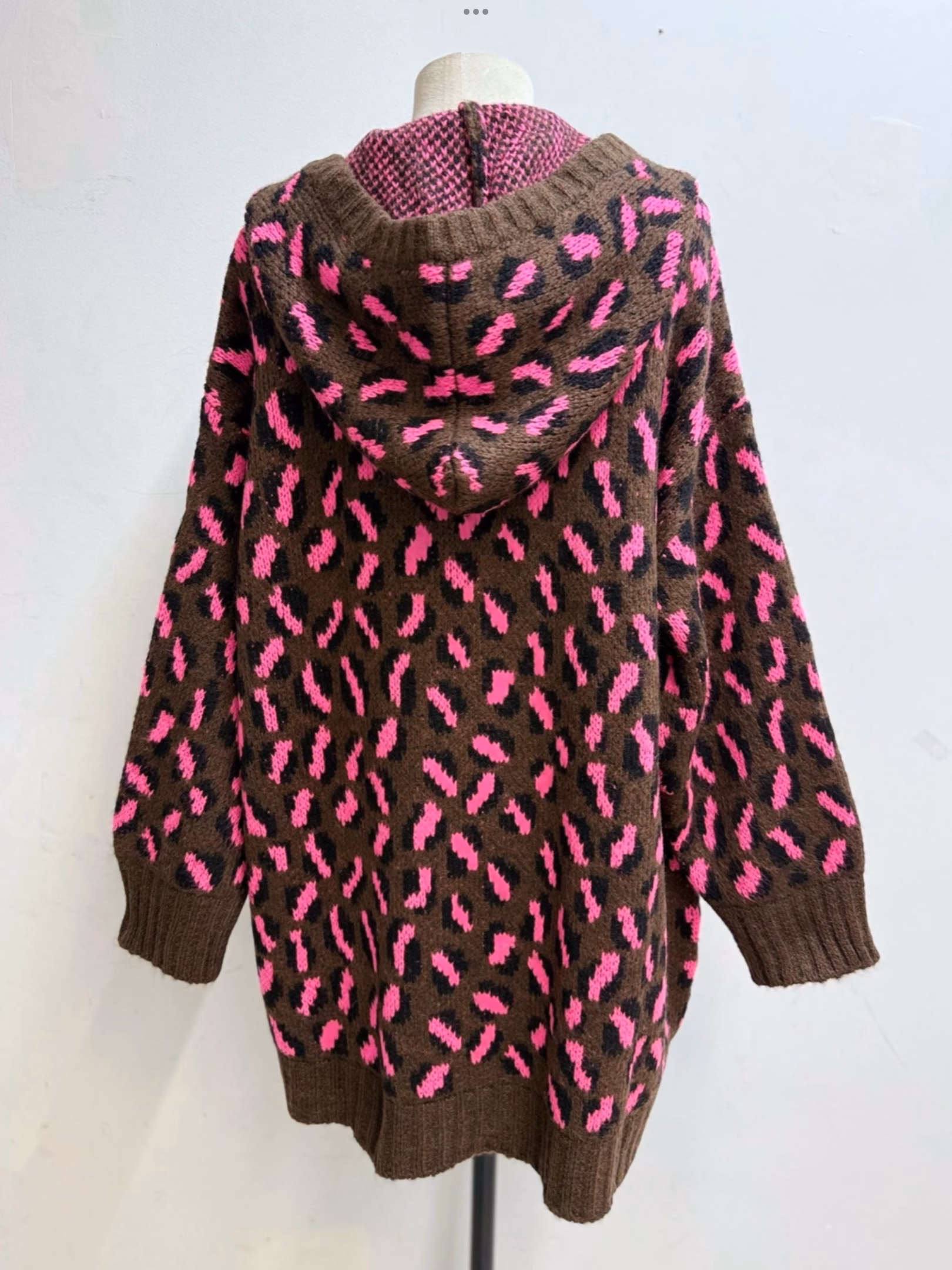Reilun pituinen Neulehuppari taskulla. Yhden koon, kai-kai 69cm, pituus 81cm. Mitat venyttämättä eli venyy koska neulosta.